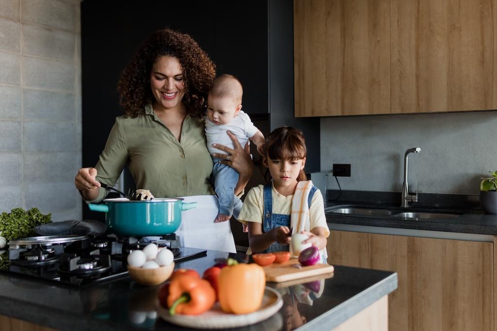 Zapojte do vaření i děti. Můžou míchat, chystat suroviny nebo pomáhat s jednoduchými úkoly. Najednou to není povinnost, ale společný čas a všichni jste spokojení. A právě to často rozhoduje. Nejen co jíte, ale jak u toho večer trávíte.